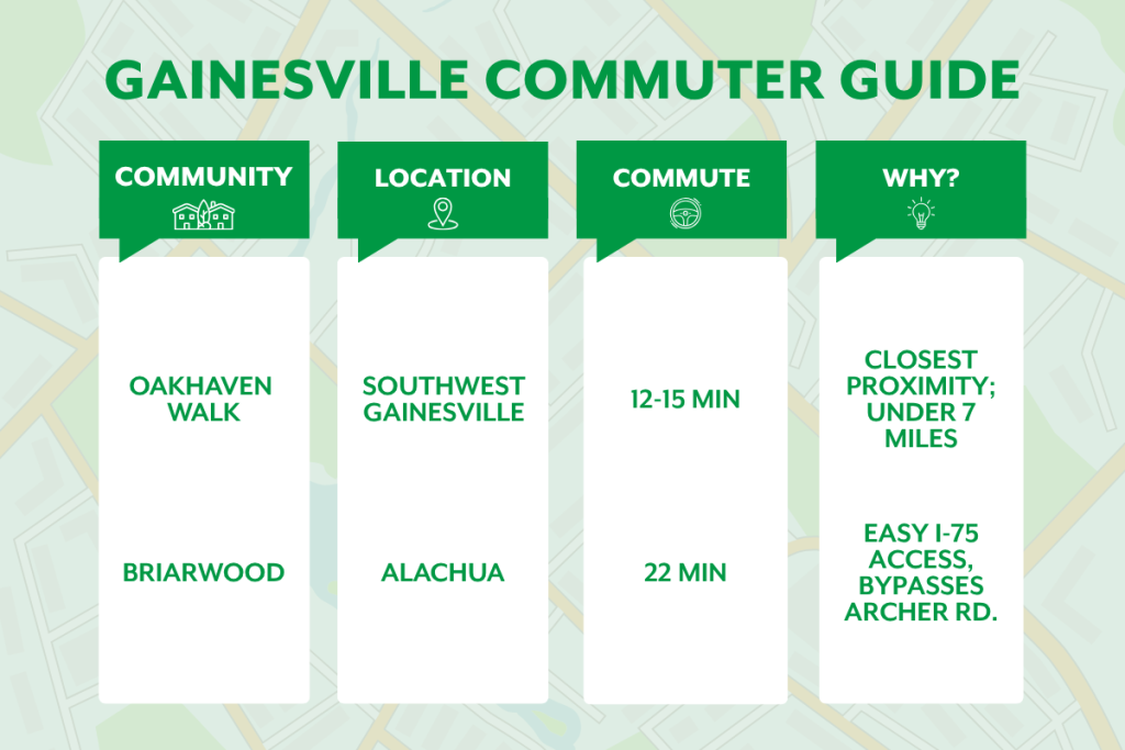 Looking for the perfect Maronda Homes Community that provides an easier, less stressful commute to Downtown? Gainesville’s commute is unique because it isn’t defined by highway congestion as much as it is by the “UF Bubble.” Traffic flows heavily toward the University of Florida and the UF Health Shands area, which sit just west of Downtown.