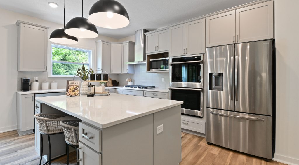 Even with the spacious feel of an open floor plan, you always want to make sure you’re maximizing the storage space of your kitchen. This can include adding more cabinets for dinnerware and cooking utensils and switching a small closet out for a walk-in pantry. You can boost the existing space with organizers, wire baskets, and more to hide the cluttered, less functional items away in cabinets and pantries. Create work-station charm with jars and stylish containers for your coffee station, cooking utensils, and fruit. By optimizing your storage space, not only will your counters feel more aesthetically pleasing and functional, but you’ll also have more room for meal prepping and entertainment.