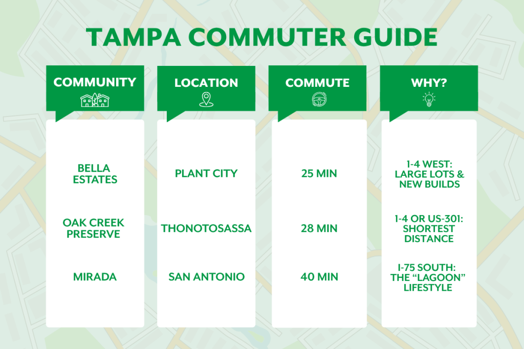 Looking for the perfect Maronda Homes Community that provides an easier, less stressful commute to Downtown? In Tampa, your commute is defined by three major obstacles: The Howard Frankland Bridge, I-275, and the Selmon Expressway. To get Downtown efficiently, you want to avoid crossing the bay if possible and stick to the “North-South” or “East-West” corridors.