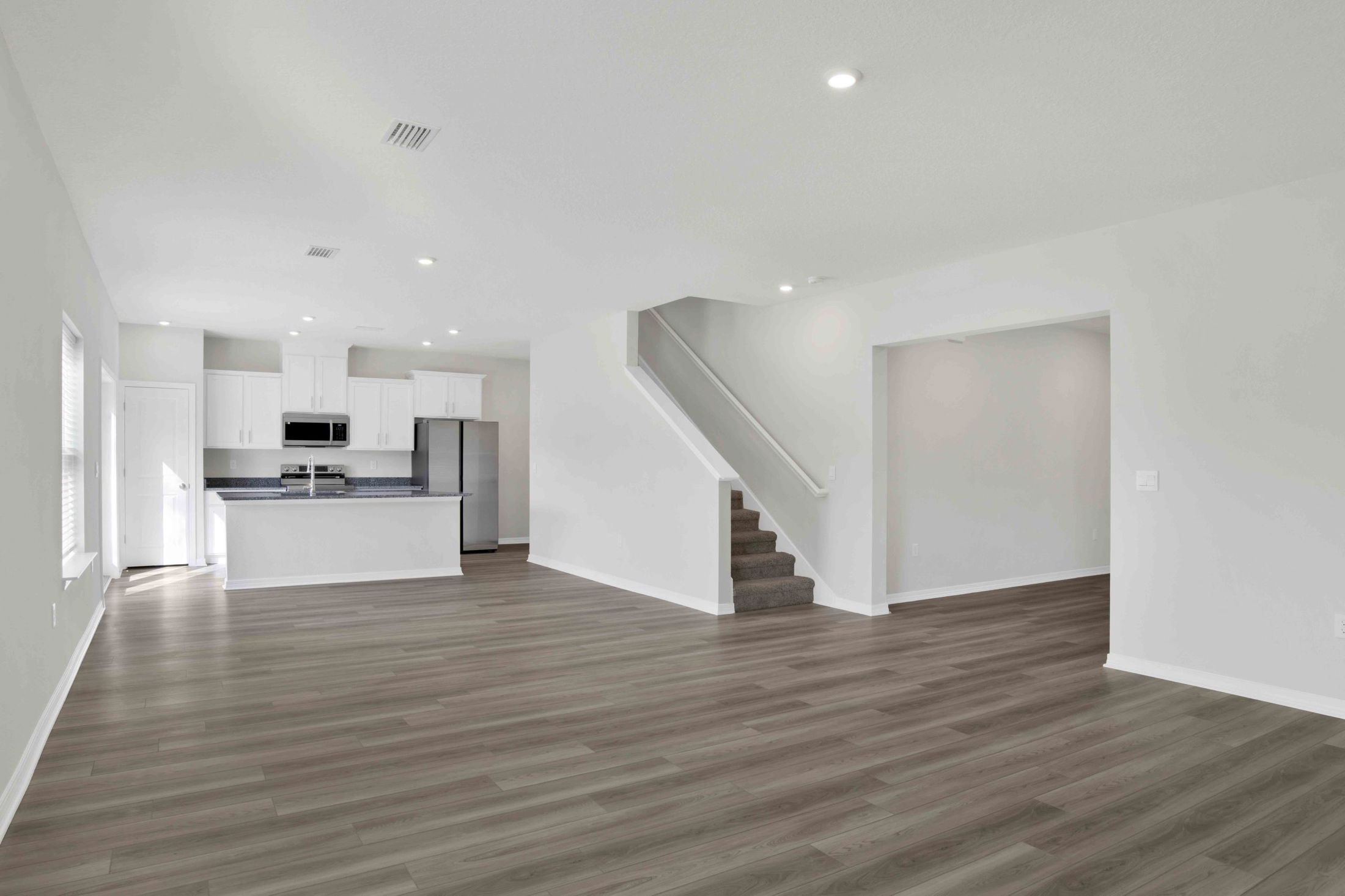 Step inside to find a versatile flex room and a convenient 2-car garage located at the front of the home. The open-concept great room seamlessly connects to the kitchen and dining areas, filling the space with natural light and creating a welcoming atmosphere for everyday living and entertaining.