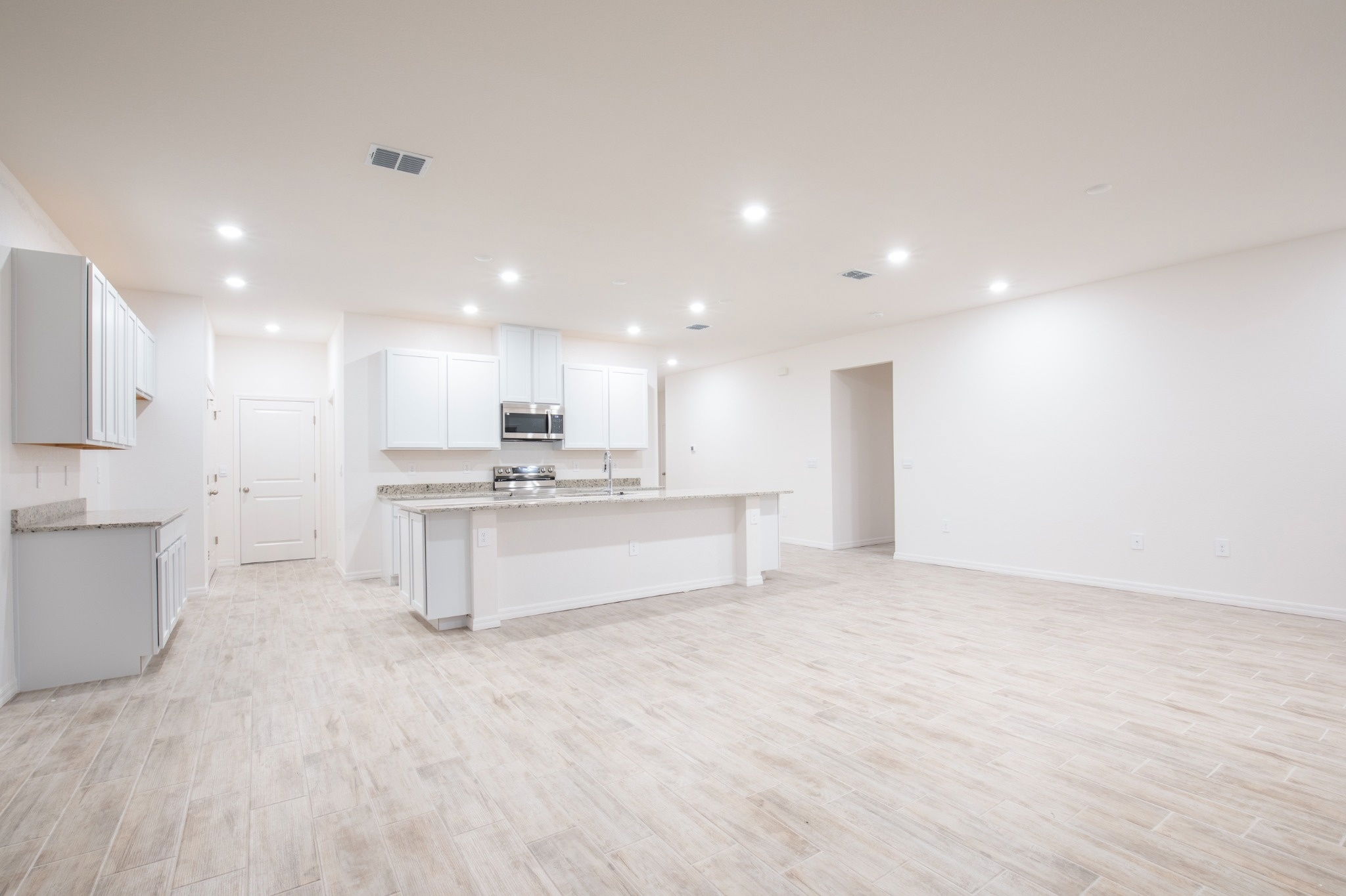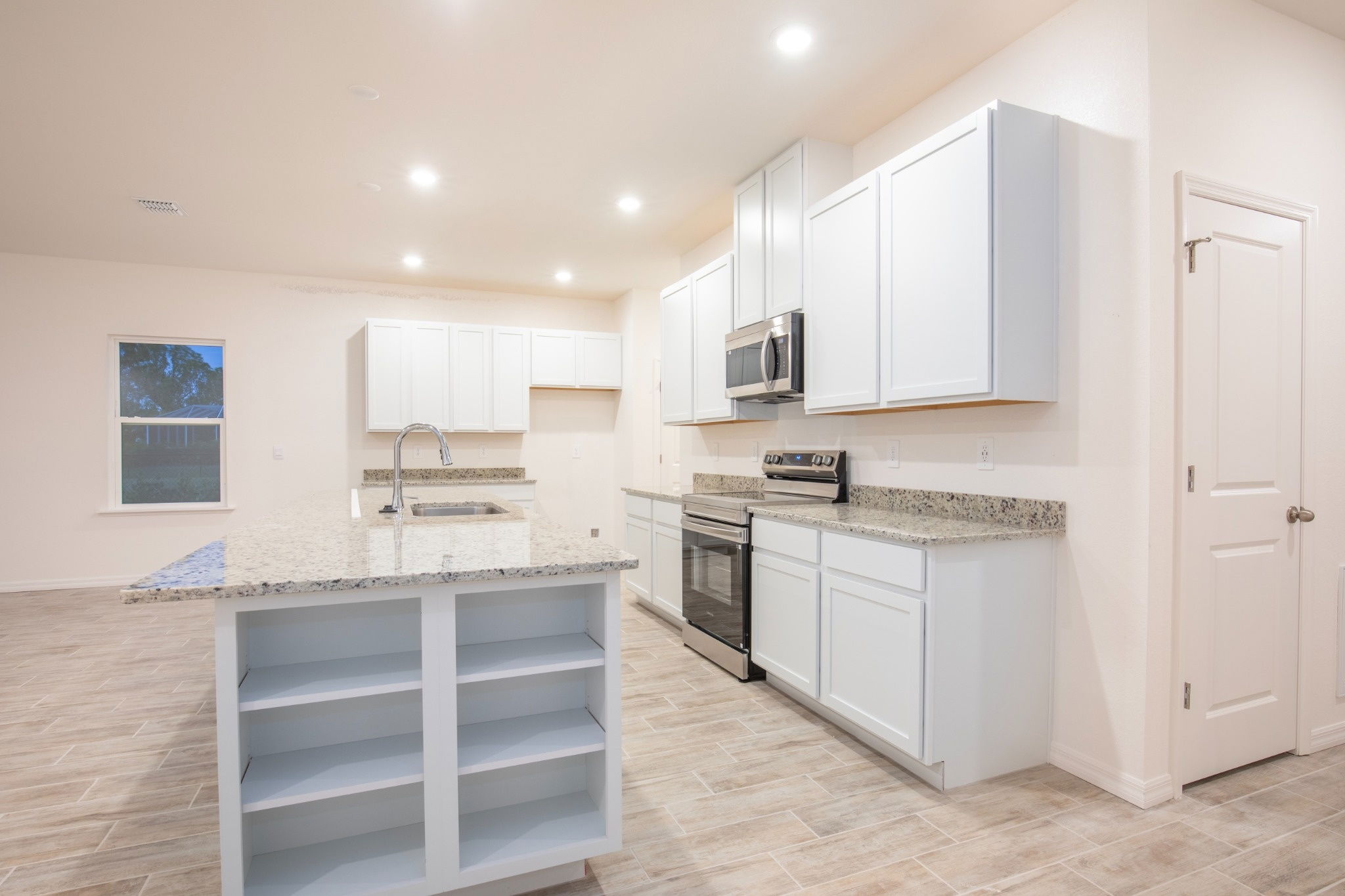 I’m a people-person at heart, which is why my kitchen sits right at the center of the home. I’ve got a huge eat-in island made for morning coffee, homework sessions, and weekend hosting, plus 42” upper cabinets and generous storage so everything has its place.