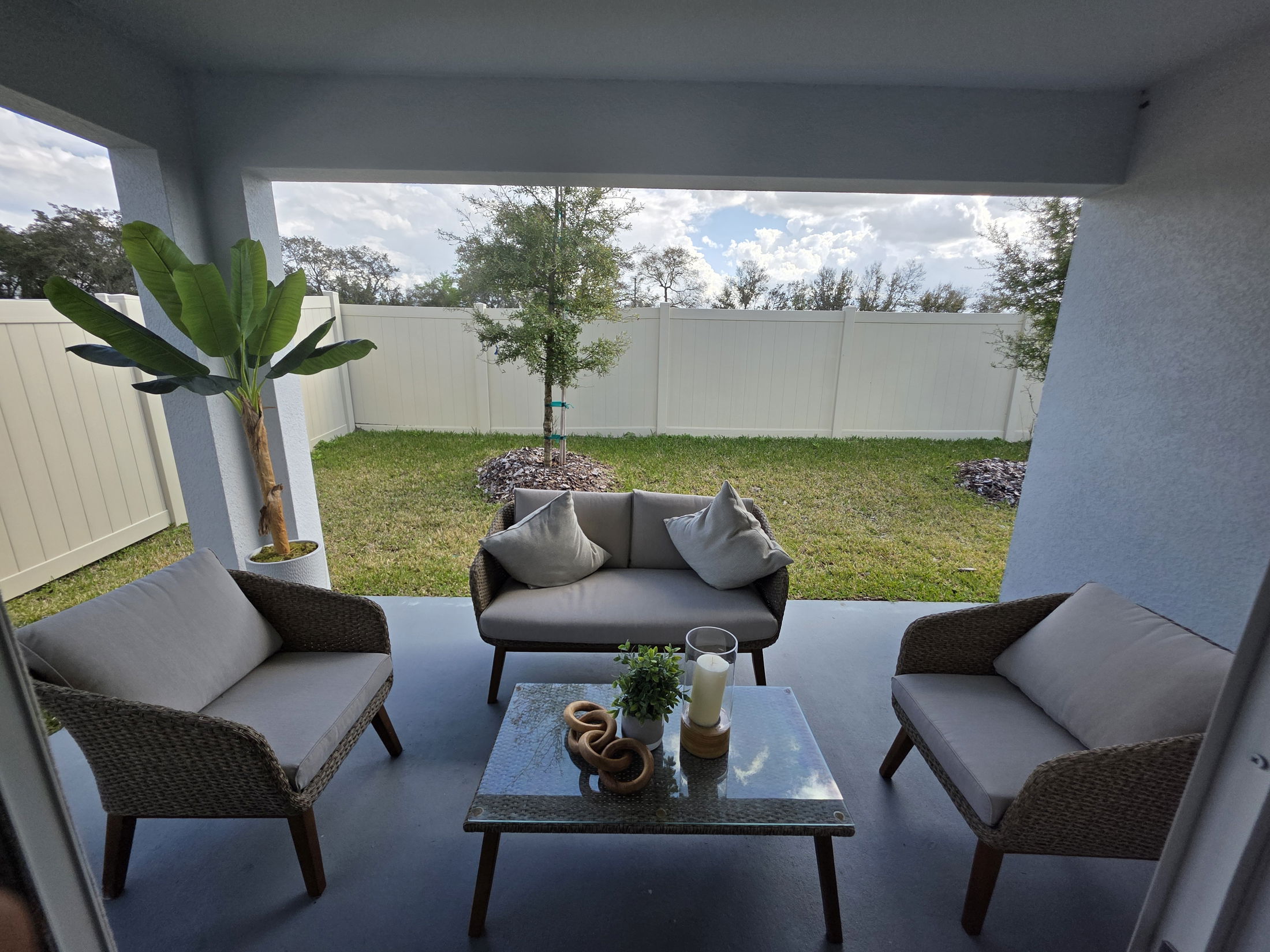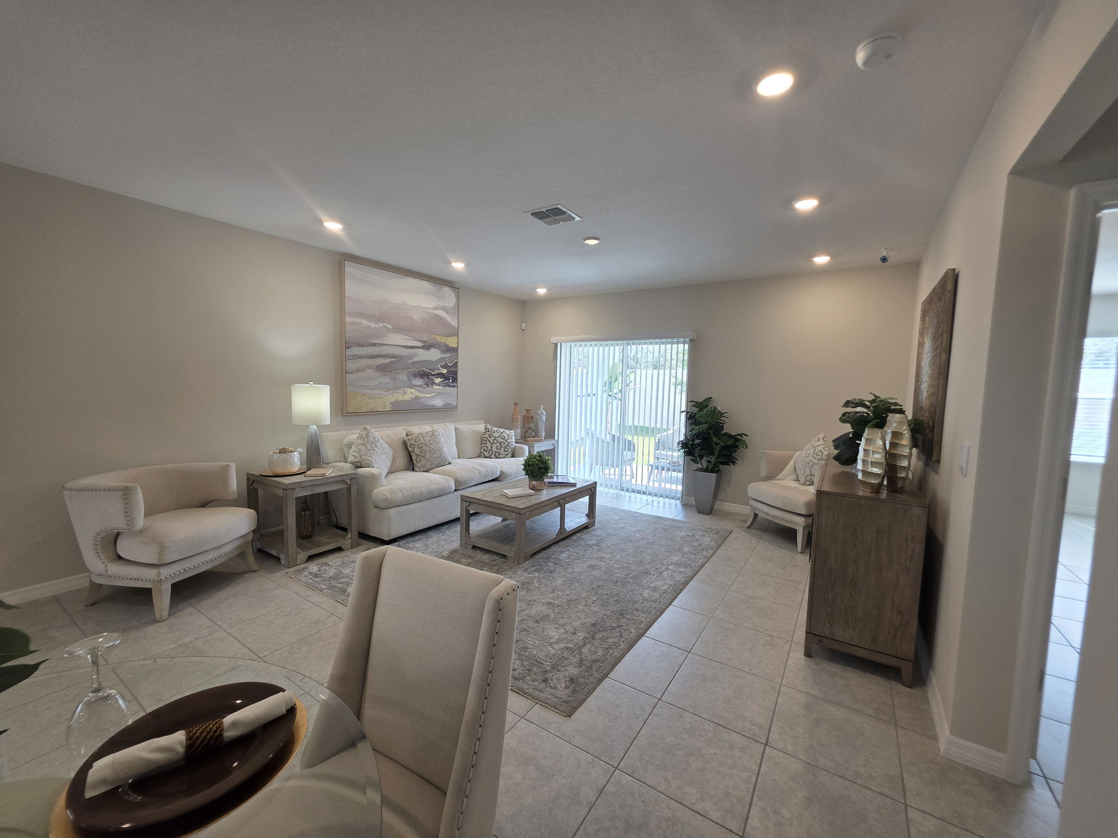 This single-story residence, located in the desirable Hammock Reserve community of Haines City, features three bedrooms, two bathrooms, and a two-car garage. The home is ideally situated across from the community playground, walking trail and mailbox for added convenience. Showcasing the Vista A floor plan, it offers an open-concept design with abundant storage throughout. The spacious great room, dining area, and kitchen are seamlessly integrated, ideal for daily living as well as entertaining guests. The kitchen boasts ample cabinetry and generous quartz counter space, supporting both everyday needs and entertaining and is also equipped with modern stainless-steel appliances, including a dishwasher, refrigerator, range, and microwave. There is a dedicated laundry room houses both a washer and dryer for added convenience. Durable tile flooring extends throughout the entire interior, for easy maintenance and versatility. The primary suite is spacious with walk-in closet and a private en-suite bathroom. Two additional bedrooms offer flexibility, serving as comfortable accommodation for guests, family members, or a home office. Outdoors, the fenced backyard provides privacy and creates an ideal space for pets or social gatherings. With no direct residential neighbors behind, the backyard offers added tranquility and seclusion. Hammock Reserve offers resort-style amenities, including a community pool, walking trail, dog park, and playground. The neighborhood enjoys a prime location minute from shopping, dining, schools, and major roadways, ensuring convenient access to nearby cities such as Lakeland, Davenport, Winter Haven, Orlando, and other attractions in Central Florida. This is a close-out opportunity with limited homes remaining. Interested buyers are encouraged to schedule an appointment to view the property.