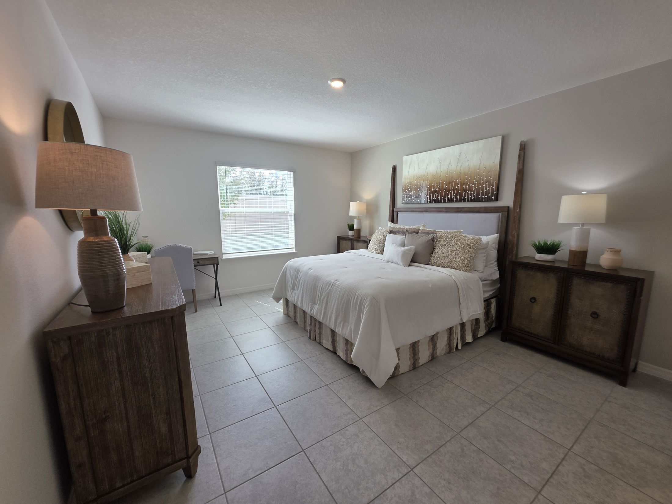 This single-story residence, located in the desirable Hammock Reserve community of Haines City, features three bedrooms, two bathrooms, and a two-car garage. The home is ideally situated across from the community playground, walking trail and mailbox for added convenience. Showcasing the Vista A floor plan, it offers an open-concept design with abundant storage throughout. The spacious great room, dining area, and kitchen are seamlessly integrated, ideal for daily living as well as entertaining guests. The kitchen boasts ample cabinetry and generous quartz counter space, supporting both everyday needs and entertaining and is also equipped with modern stainless-steel appliances, including a dishwasher, refrigerator, range, and microwave. There is a dedicated laundry room houses both a washer and dryer for added convenience. Durable tile flooring extends throughout the entire interior, for easy maintenance and versatility. The primary suite is spacious with walk-in closet and a private en-suite bathroom. Two additional bedrooms offer flexibility, serving as comfortable accommodation for guests, family members, or a home office. Outdoors, the fenced backyard provides privacy and creates an ideal space for pets or social gatherings. With no direct residential neighbors behind, the backyard offers added tranquility and seclusion. Hammock Reserve offers resort-style amenities, including a community pool, walking trail, dog park, and playground. The neighborhood enjoys a prime location minute from shopping, dining, schools, and major roadways, ensuring convenient access to nearby cities such as Lakeland, Davenport, Winter Haven, Orlando, and other attractions in Central Florida.