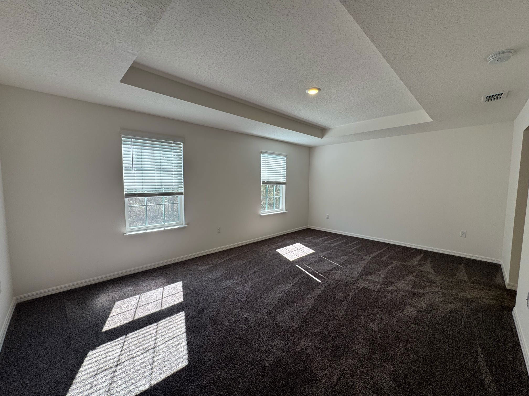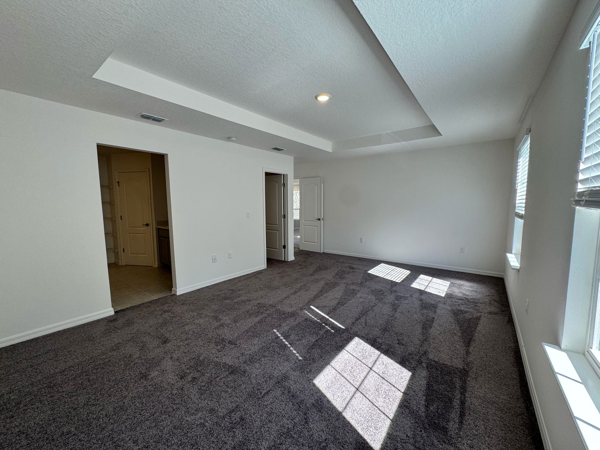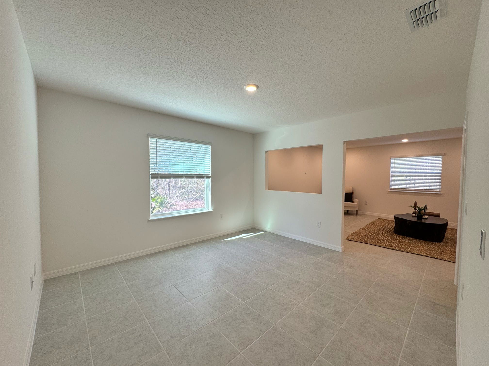 The residence boasts a large upstairs flex space perfect for a home office or entertainment room, enhanced by distinctive wrought iron spindles on the staircase. The master suite opens through French doors and includes a beautifully tiled shower with a sleek glass enclosure. Further enhancing the home are extra lighting in the family room for a bright and welcoming atmosphere, cordless blinds for a contemporary look, and exterior floodlights for added security. Practical additions include an extra outlet in the garage, cable TV pre-wiring, a security system, and a Chase tube for easy TV mounting. Ready for immediate move-in, this Baybury home not only provides ample indoor and outdoor space but also offers the freedom to make it uniquely yours. Explore the possibilities of living in Flagler Estates, where your space is your own to shape and enjoy.