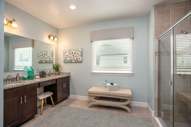 Welcome to The Drexel, a beautifully designed 3-bedroom, 2-bath home featuring a split floor plan that provides privacy and comfort for the entire family. The master suite is thoughtfully separated from the secondary bedrooms, offering a peaceful retreat with a spacious walk-in closet and private bathroom with tiled walk-in shower and double vanities. The second and third bedrooms share a hall bathroom with a combination tub and shower.