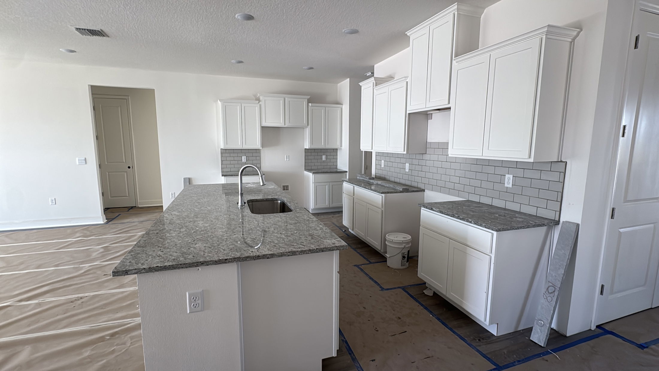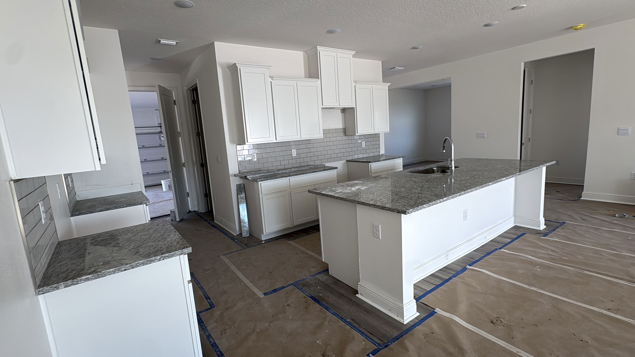 The kitchen is a true centerpiece with a stylish tile backsplash and modern design. The den/flex room provides versatility—perfect for a home office, media room, or bonus living space.