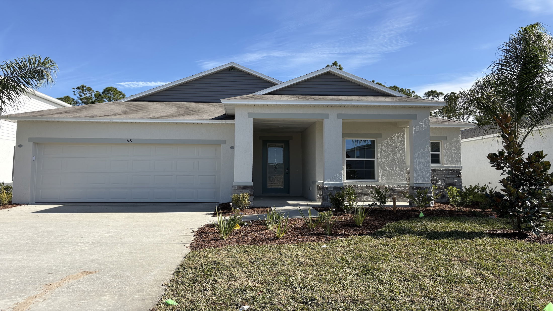 Step Into Elegant Comfort at The Drexel in Enclave at Seminole Palms. Just 10 minutes from the beaches of Flagler, The Drexel offers an elevated blend of design, comfort, and everyday convenience in the resort-style community of Enclave at Seminole Palms—where luxury meets lifestyle. This thoughtfully designed home welcomes you with 9'4" ceilings, deluxe interior trim package, and ceramic tile flooring throughout, creating a bright, modern interior with timeless appeal. Enter through the 8' full-lite front door and flow into an open-concept layout that connects the expansive great room to the heart of the home—an upgraded kitchen featuring granite countertops, modern appliances, upgraded cabinetry, and a large island with built-in shelves and eating bar. A sunlit breakfast nook with an additional window offers the perfect corner for casual dining. Enhanced by flush mount LED lighting, the great room and primary bedroom are bathed in a soft, welcoming glow—adding both warmth and elegance to these essential living spaces. The private owner’s suite is a true retreat, complete with a generous walk-in closet and a spa-inspired en-suite bath featuring dual vanities and a beautifully tiled walk-in shower. Two secondary bedrooms are tucked away for privacy and share a well-appointed full bath. A laundry/mudroom just off the 2-car garage adds everyday convenience, while smart features like a Ring Video Doorbell, Smart Thermostat, Keyless Entry Smart Door Lock, and Deako switches deliver comfort and connectivity throughout the home. Upgrades continue outdoors with architectural shingles, an irrigation system, and sidewalk-lined streets that encourage evening strolls and neighborly connection. Enjoy access to resort-style amenities, including a clubhouse, fitness room, pool with sundeck, covered patio and pavilion, playground, and a dog park. Backed by a full builder warranty, The Drexel is more than a home—it’s your gateway to the Florida lifestyle. Schedule your private showing today.