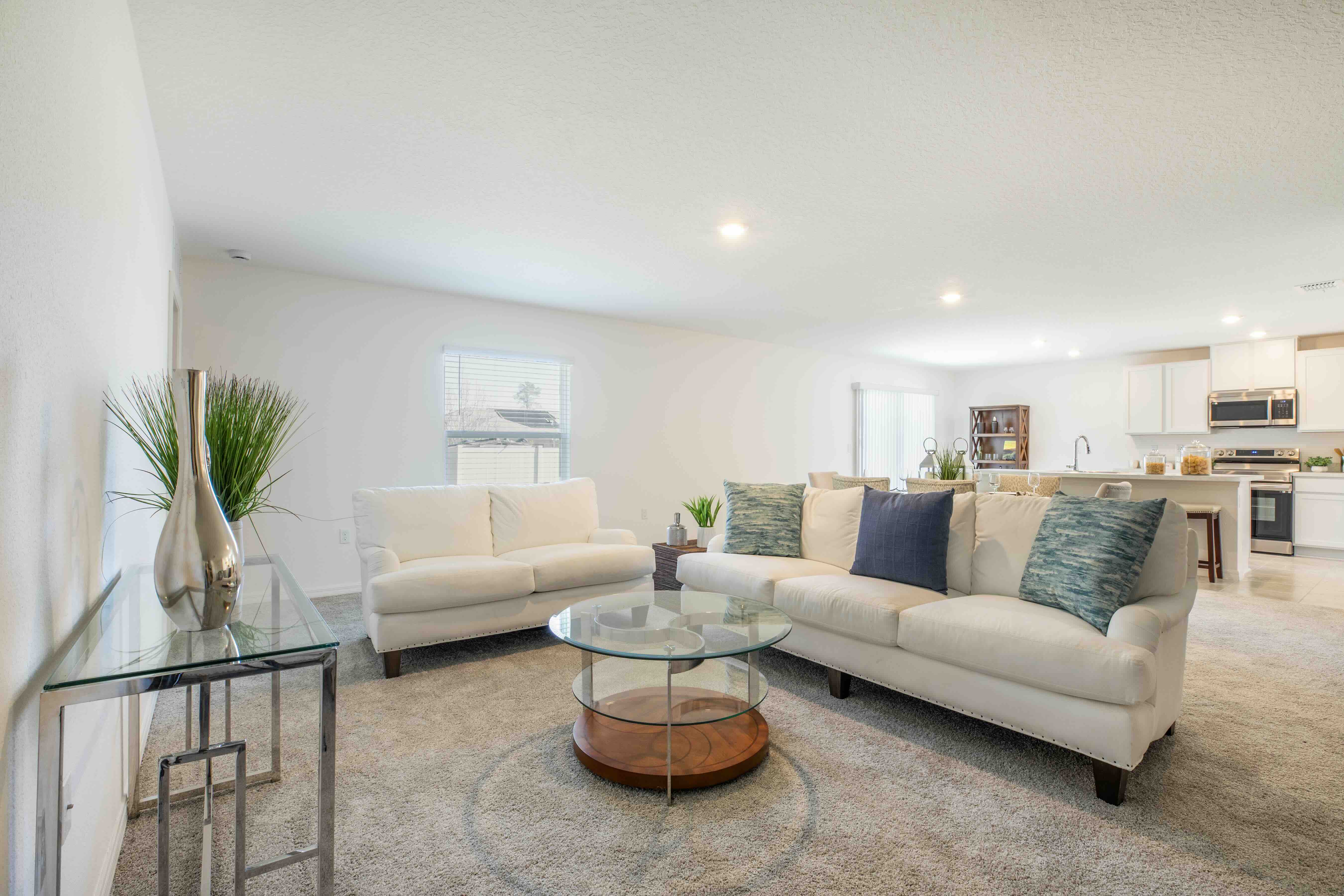 The large kitchen includes a large island that’s great for preparing meals and entertaining. The kitchen leads to a patio area to extend your living space outdoors.