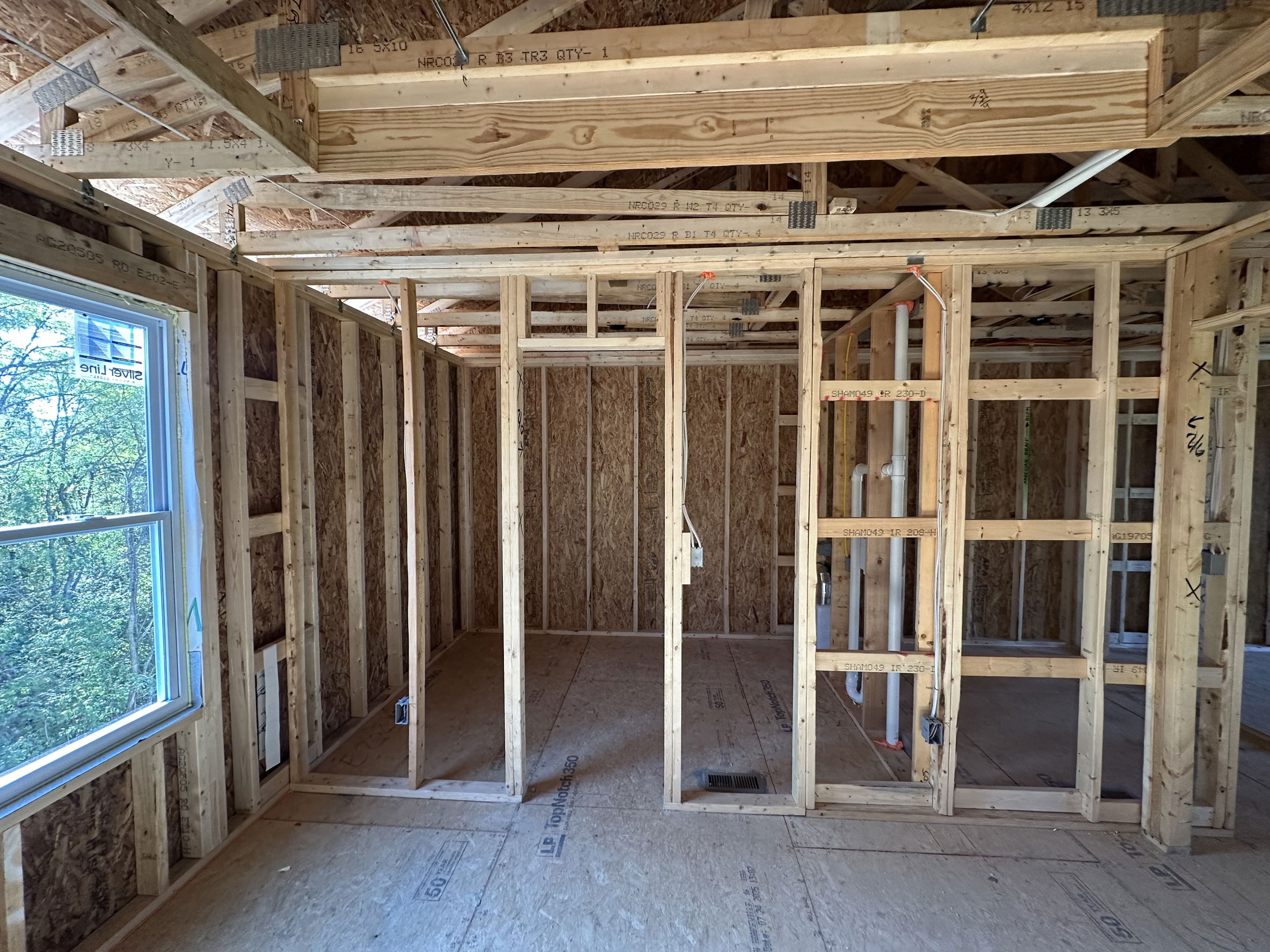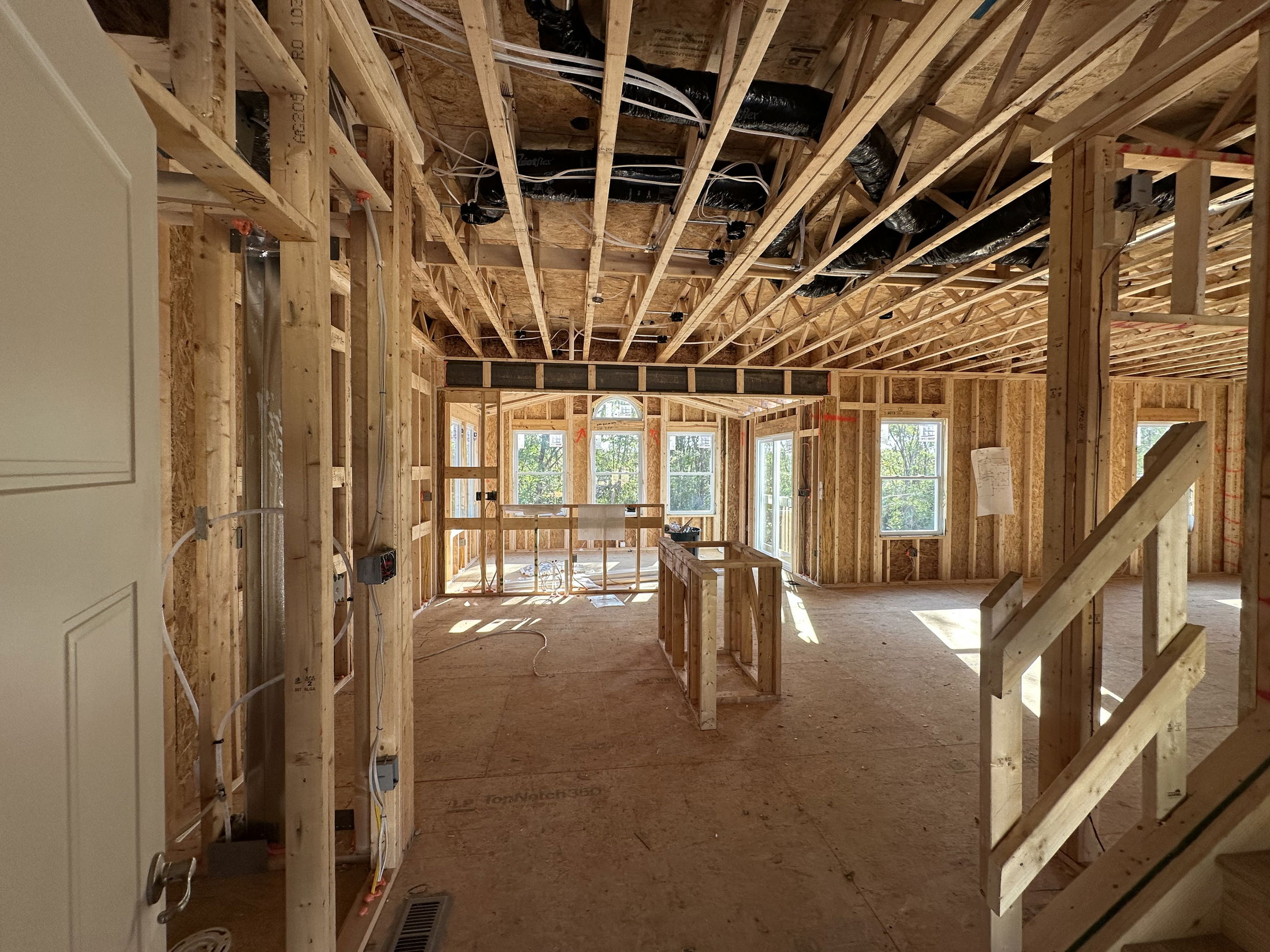 The heart of the home features a large, light-filled family room that flows seamlessly into the breakfast nook and kitchen. With 9-foot ceilings and additional windows throughout the first floor, this space feels bright and airy. The kitchen opens fully to an optional 10' x 16' sunroom with glass walls on three sides, inviting natural light and fresh air inside. A raised countertop provides extra seating and perfect integration with the kitchen. Upstairs, discover 4 bedrooms and 2 full bathrooms, each with double sinks. The owner’s suite boasts nearly 70 square feet of walk-in closet space, offering plenty of storage.