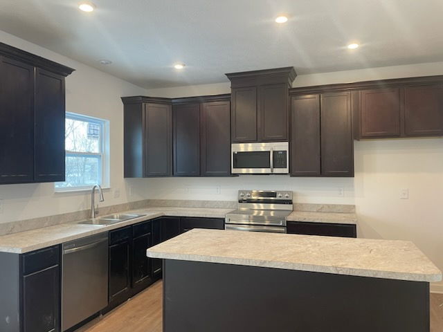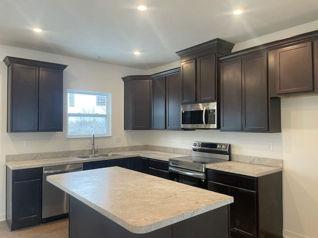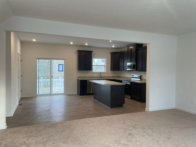 Inside, you’ll find a smart mix of luxury vinyl plank flooring and carpet, offering durability in the main living areas and comfort in the spaces where you want to unwind. The spacious kitchen is the heart of the home, complete with a large island that’s perfect for everyday meals, casual gatherings, or spreading out while cooking. It’s the kind of layout that works just as well for quiet mornings as it does for hosting friends.