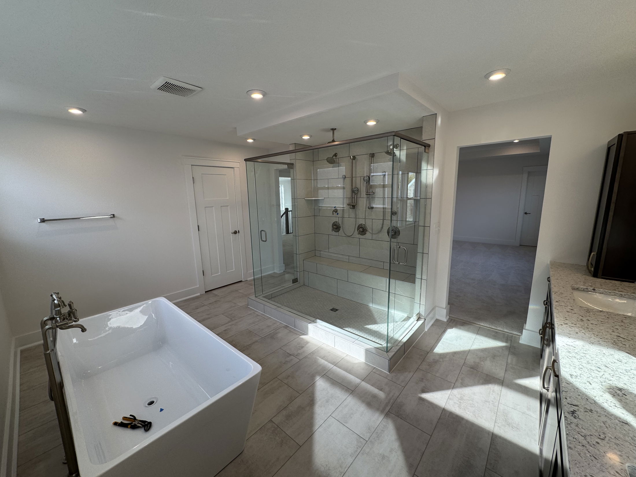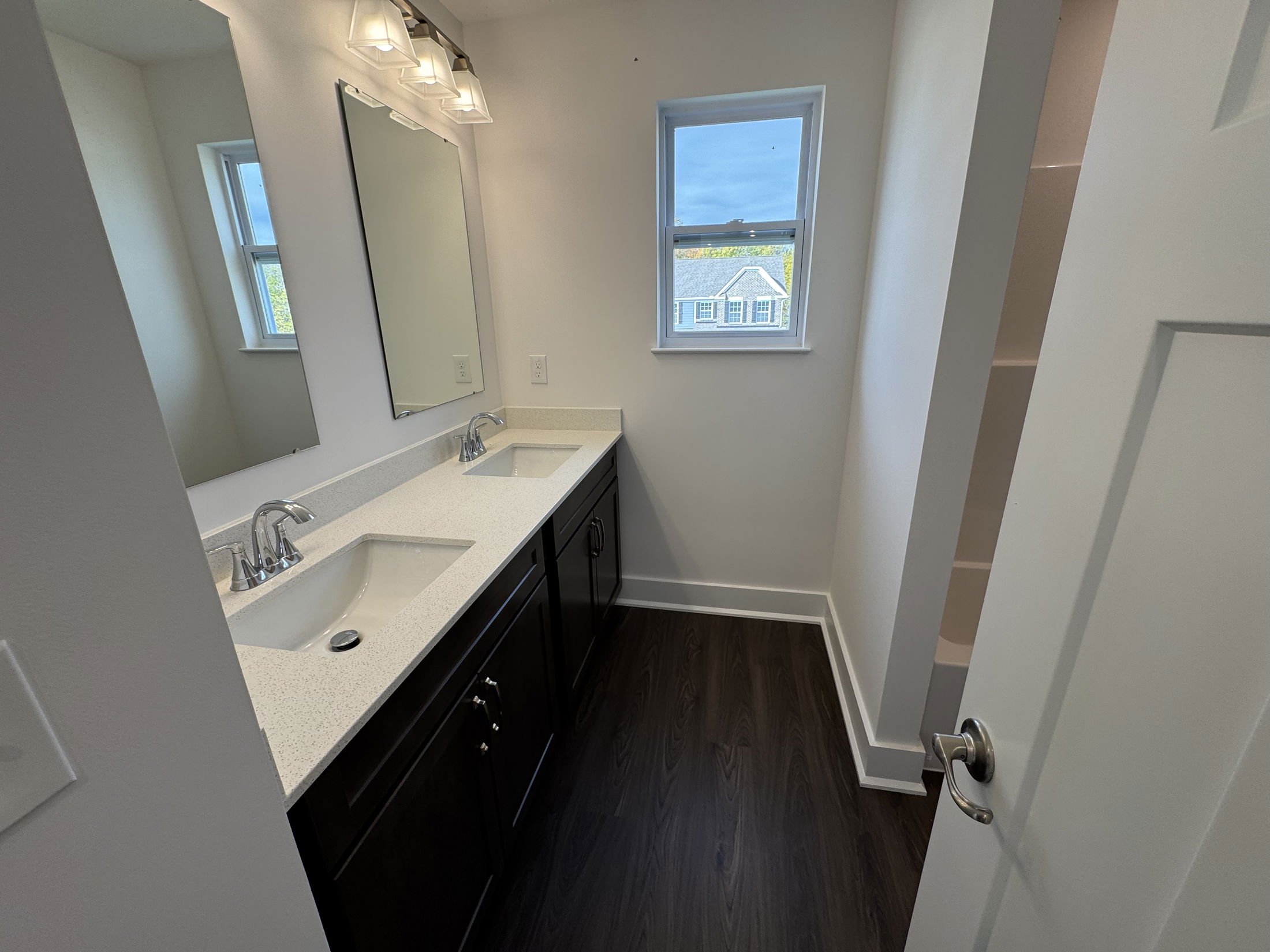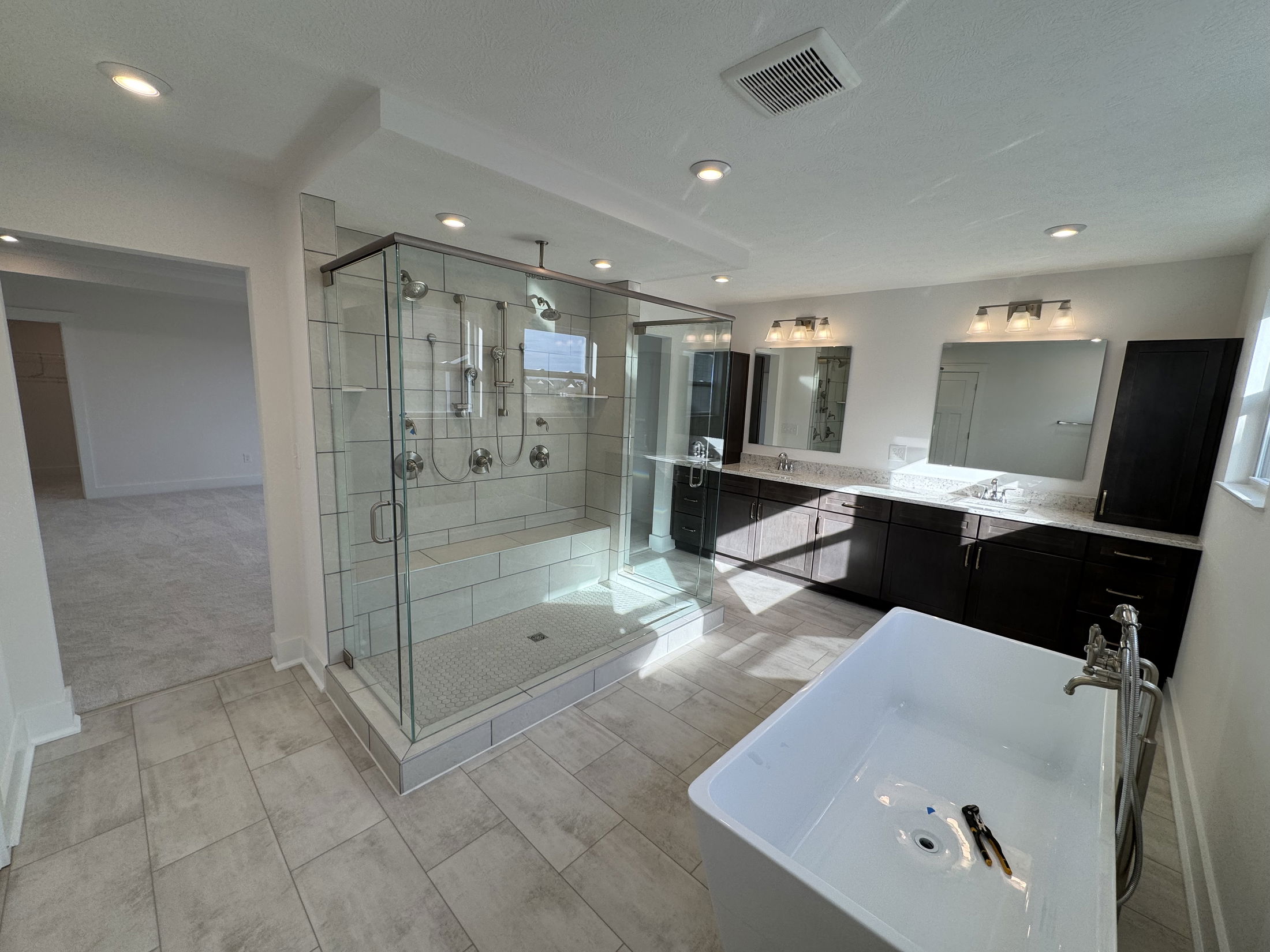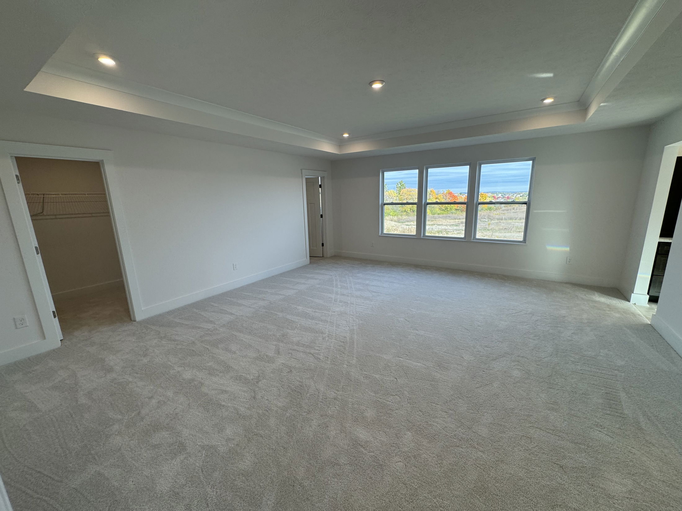 Upstairs, the luxurious owner’s suite boasts a stylish tray ceiling, an award-winning spa bath, and a spacious California closet designed for optimal organization and style.