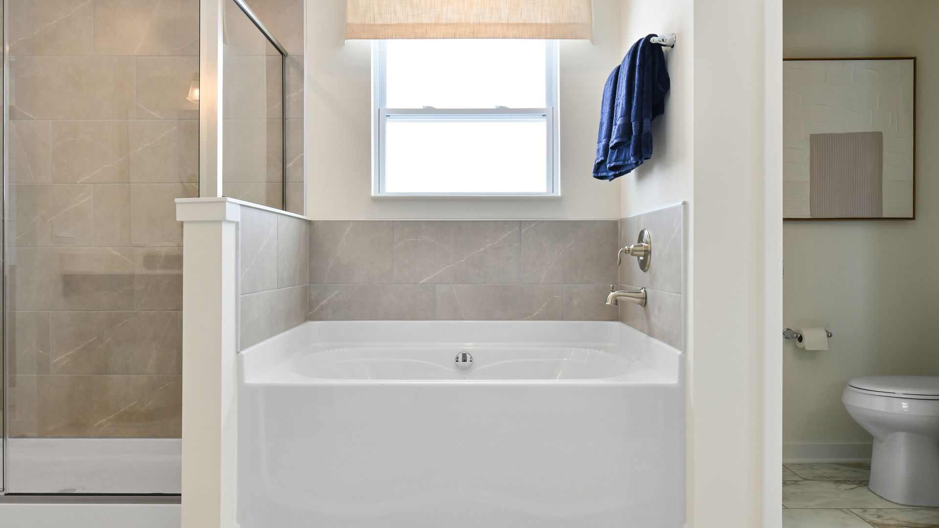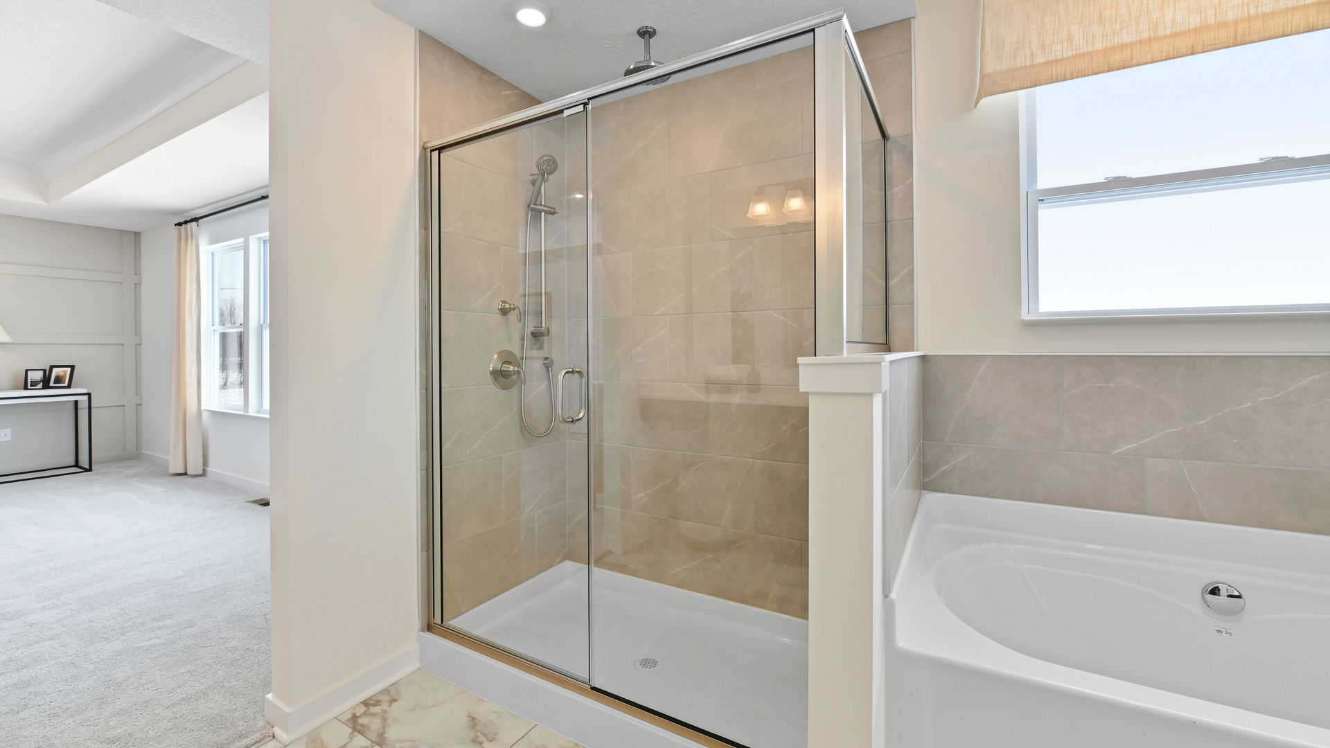 oversized walk-in closet and an owner's bath with a soaking tub, a separate