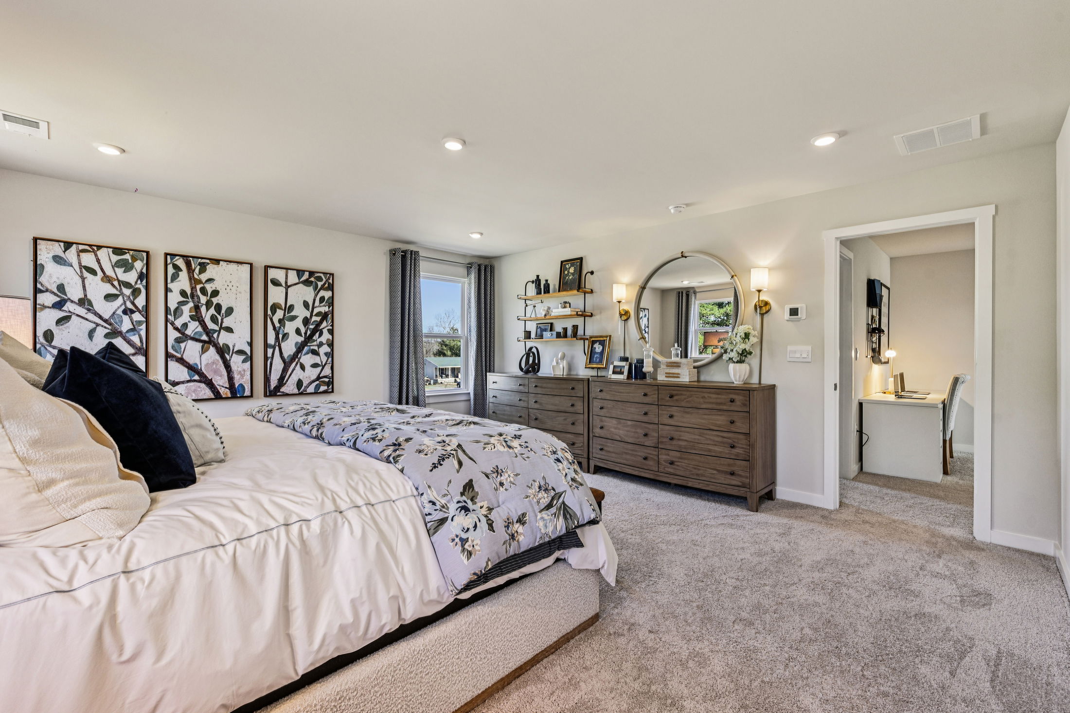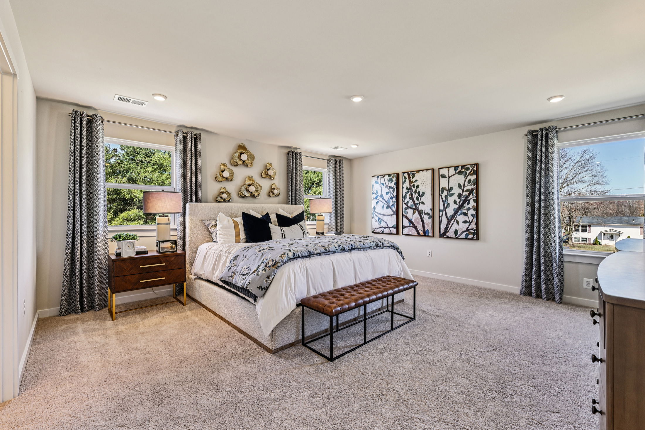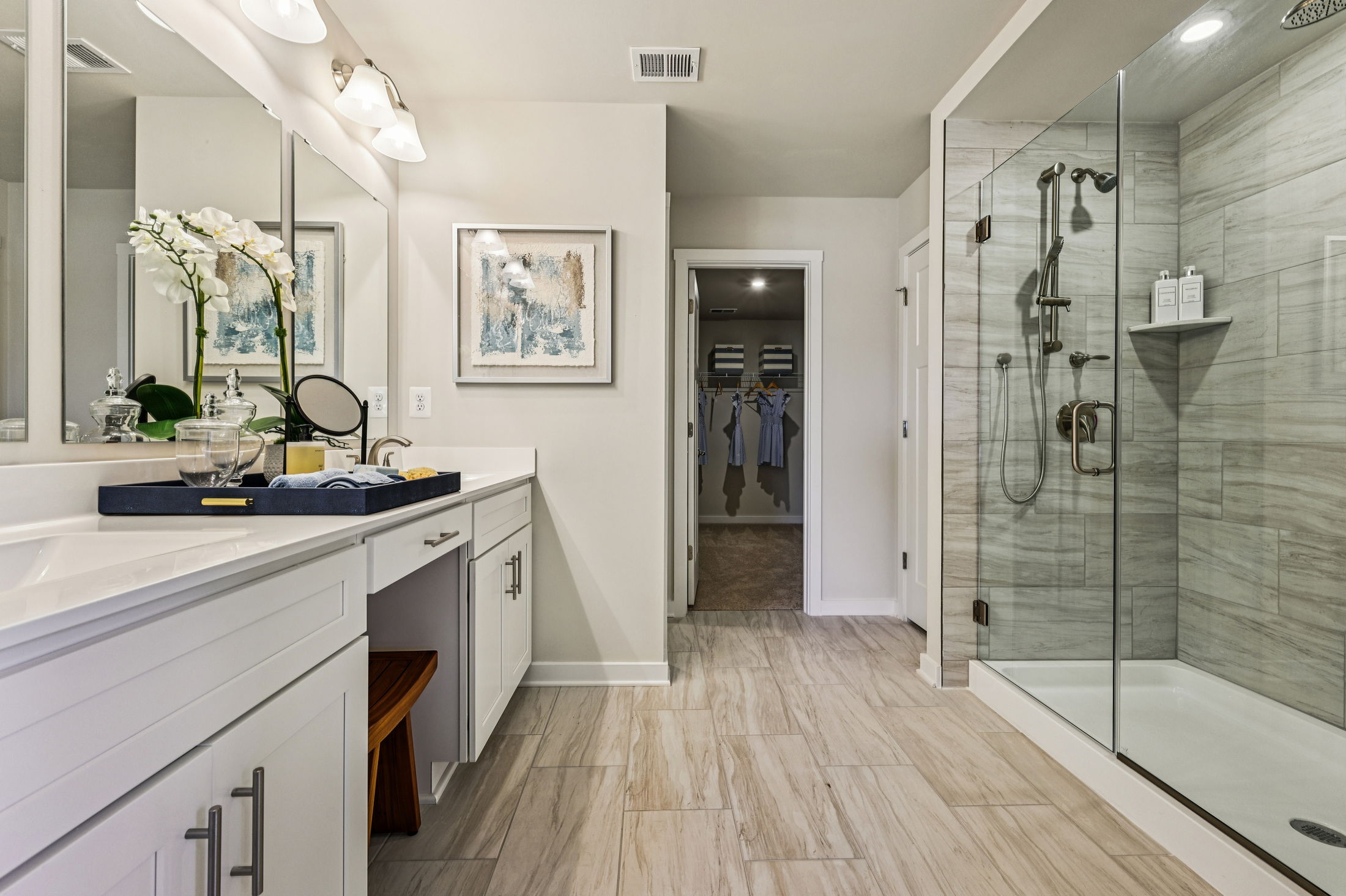 The owner’s suite is thoughtfully positioned for privacy and includes a luxurious en-suite bath and oversized walk-in closet. Secondary bedrooms are generously sized and thoughtfully placed to maximize comfort and convenience.