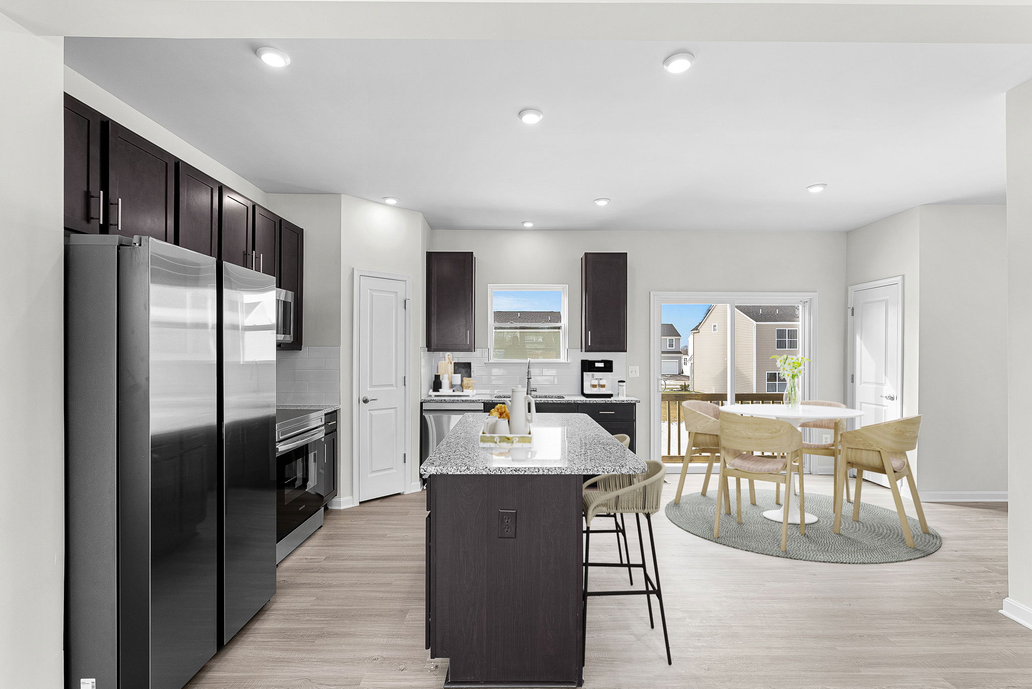 Step into the Dallas, where modern elegance meets comfort! The Dallas is a beautiful home design from our Americana series with 2,654 finished square feet of space.The 9’ ceilings throughout the family room and kitchen create an airy, spacious atmosphere perfect for family living and entertaining. The stunning kitchen boasts a cozy breakfast nook for casual dining, a generous pantry for all your storage needs, and a convenient powder room nearby.